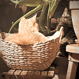 Le premier été de la vie de Léontine, je l’ai trainée avec moi au jardin. Elle grimpait sur les grands tuteurs de haricots, puis je la trouvais souvent endormie sous des feuilles de courges. Arthur m’accompagnait, fidèle à lui-même, à chaque étape de mes travaux. Rapportant maintenant ses proies à la juvénile, il est devenu son mentor et surtout son gardien.